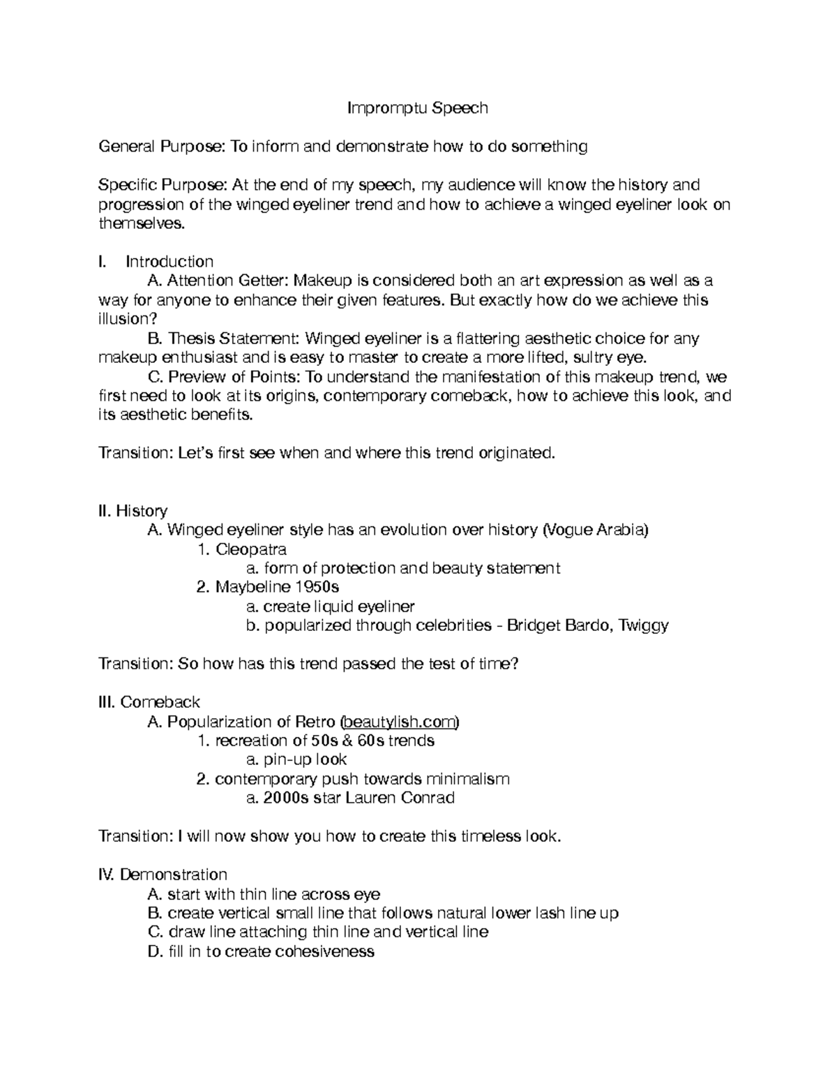 Dem Speech Cj 130 Public Speaking Unm Impromptu Speech General Purpose To Studocu