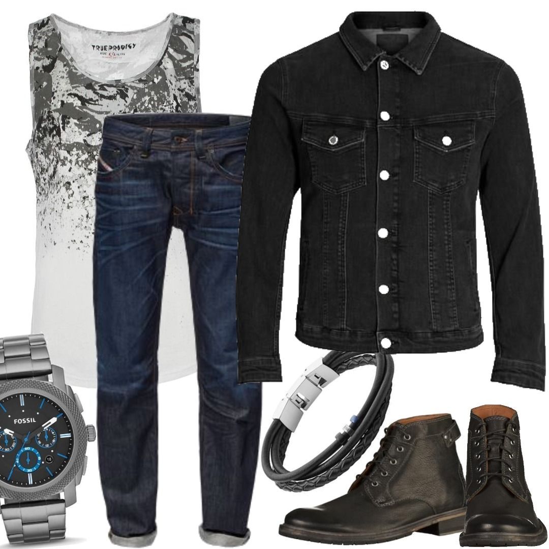 Jack Jones Jeansjacke Schwarz Tigha T Shirt Milo Schwarz Men Outfit Fur Herrenoutfits Zum Nachshoppen Auf Stylaholic