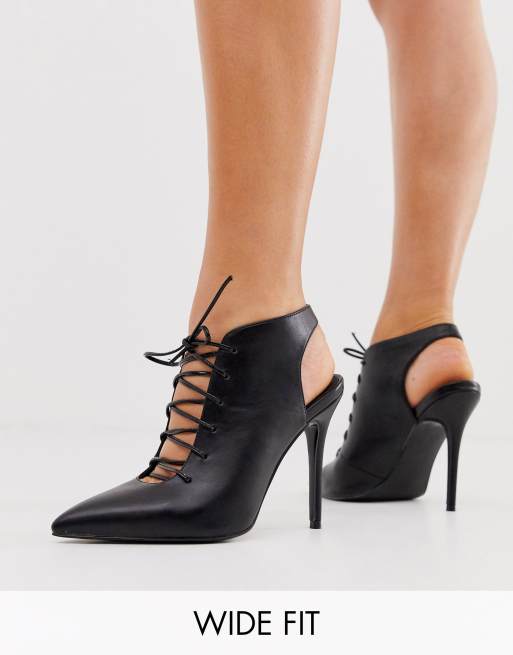 Asos Design Wide Fit Proud Schwarze Schnur Stiefeletten Mit Hohem Absatz Asos