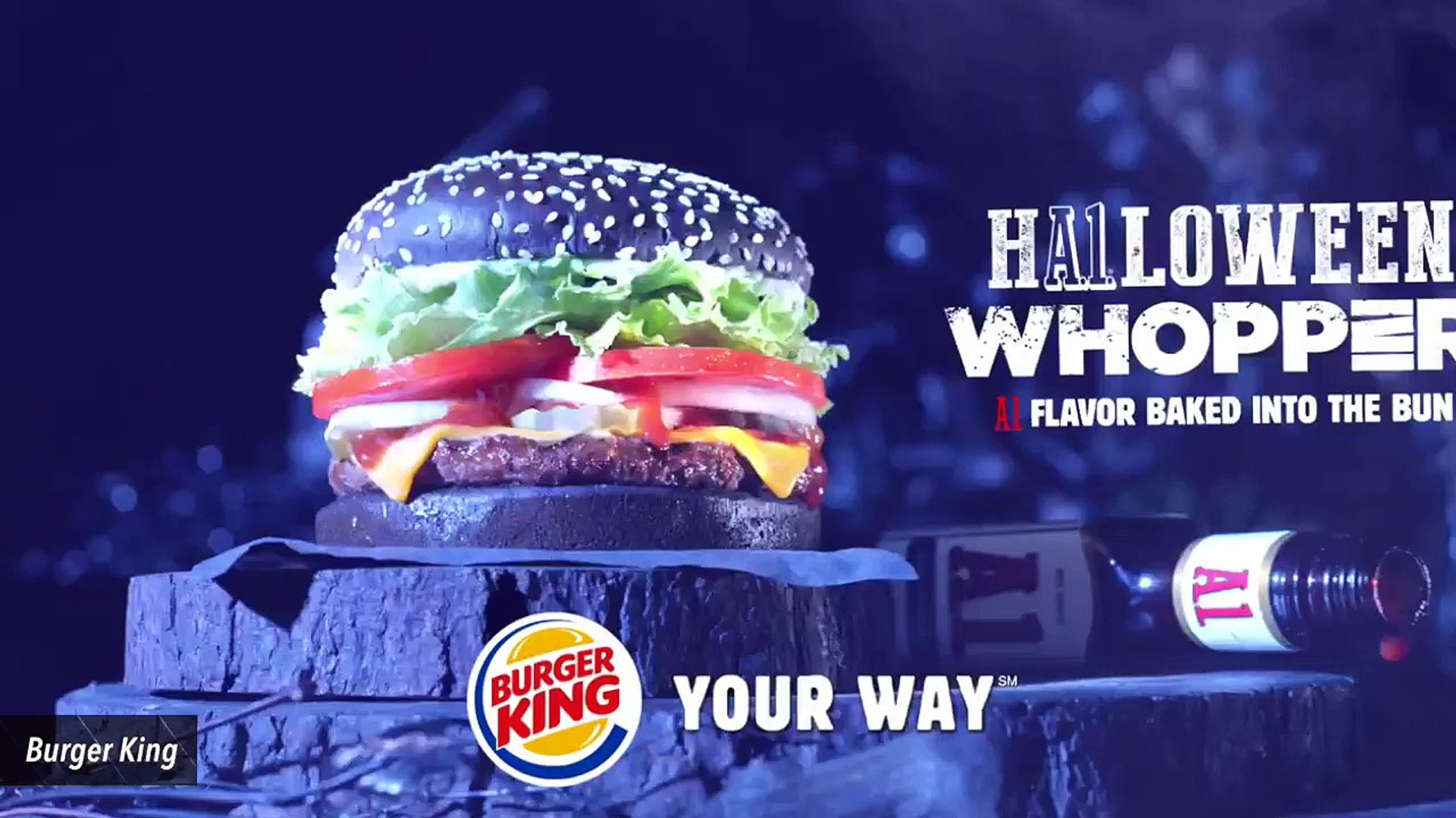 Burger King Japan took weird burger mutations to new heights/lows, announcing a Premium Kuro Burger (kuro means "black") with black buns and cheese coloured with bamboo charcoal and squid ink ketchup. The Halloween whopper comes with a black bun, which has the A1 smokey steak sauce baked in A similar burger went on sale in Japan last year, which also included black cheese and derived its color. Burger King's Halloween Whooper—excuse us, the correct name is the HA1loween Whopper, is a spooky special that has a distinct ebony color to either get you pumped for Halloween or turn you off.
