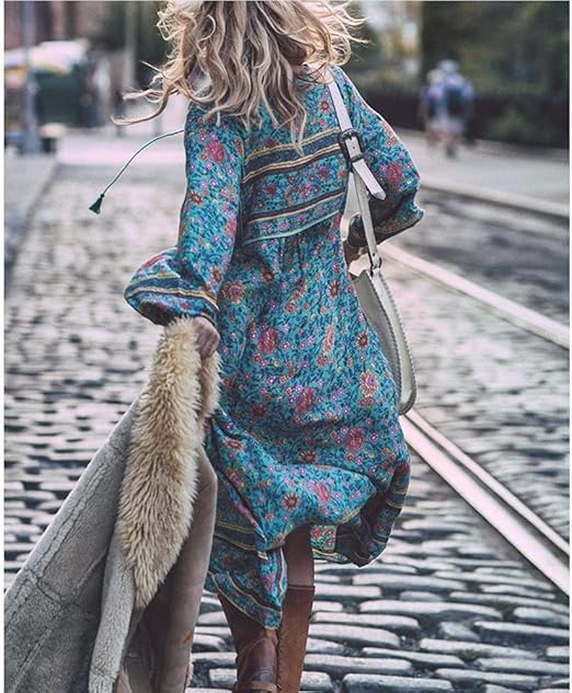 Boyyang Sommerkleider Damen Langes Kleider Grosse Grossen Frauen Boho Gedruckt Langarm V Ausschnitt Kleid Maxikleid Saum Baggy Kaftan Langes Kleid Maxikleid Strandkleider Tunika Kleid Etuikleid Amazon De Bekleidung