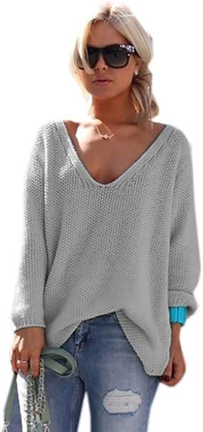 Schoner Sommer Sexy Pullover Mit V Ausschnitt Pulli Viele Schone Farben Urlaub Einheitsgrosses M 617 Grau Amazon De Bekleidung