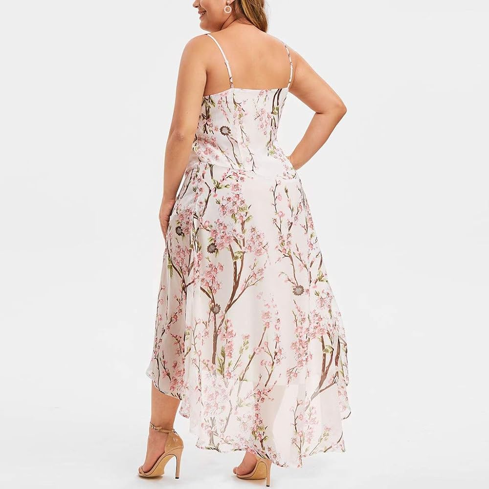 Empire Waist Dress For Women Plus Size Boho V Neck Asymmetric Flowy Hem Wrap Maxi Dress L White At Amazon Women S Clothing Store