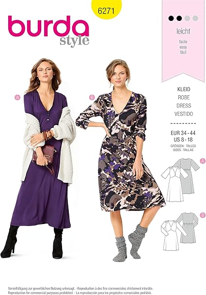 Amazon Com Burda Style Sewing Pattern 6271 Misses Knit Dresses With Empire Line Seaming Length And Sleeve Options Size A 8 10 12 14 16 18 Arts Crafts Sewing