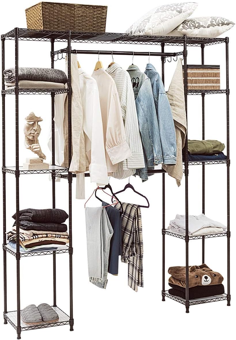 Costway Clothes Rack With Shelves Metal Clothes Rack With Clothes Rack Extendible Clothes Airer Wardrobe With Clothes Rail Choice Of Colours Coffee Amazon De Kuche Haushalt