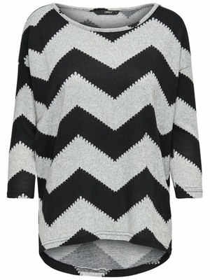 Ladies Oversize Pullover Shirt Onlelcos 4 5 Aop Top Noos Zigzag Black Gray Ebay