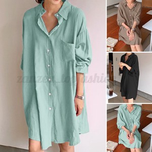 Zanzea Damen Knopf Shirt Langarmshirt Bluse Kragen Lang Hemd Longtop Oberteile Ebay