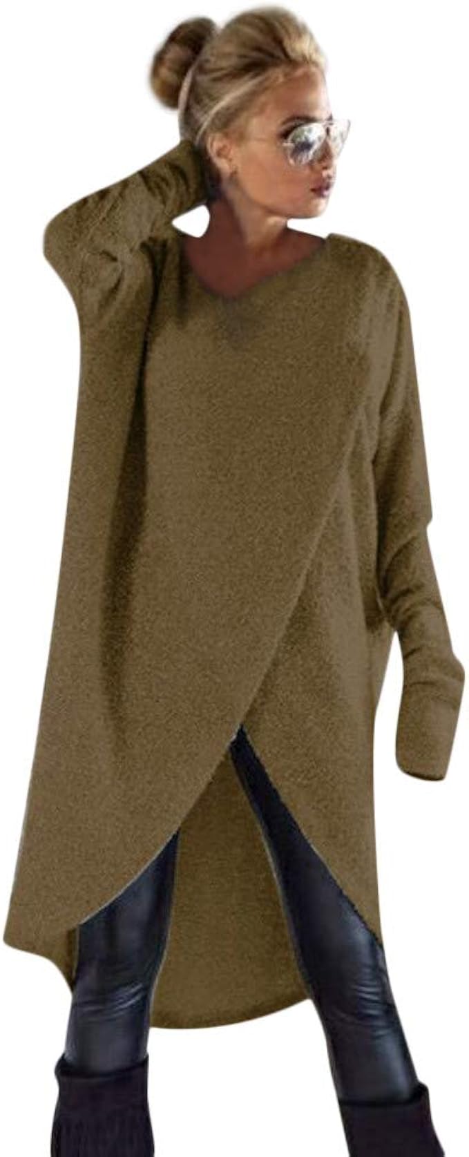 Tookang Damen Beilaufig Langarm Sweatshirt Pullover Wickeln Asymmetrischer Saum Pullover Lange Oberteile Amazon De Bekleidung