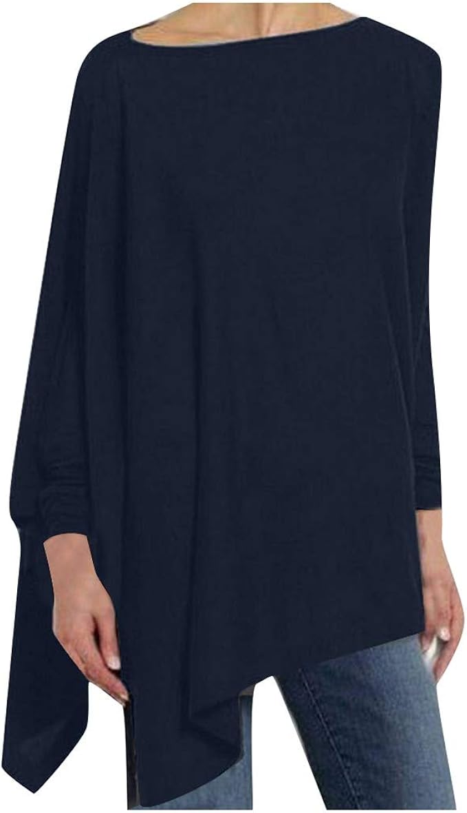 Qimanzi Langarmshirts Damen Frauen Bluse Solide Lange Armel Irregular Sweatshirt Lose Drucken Pullover Oberteile Tops Amazon De Bekleidung