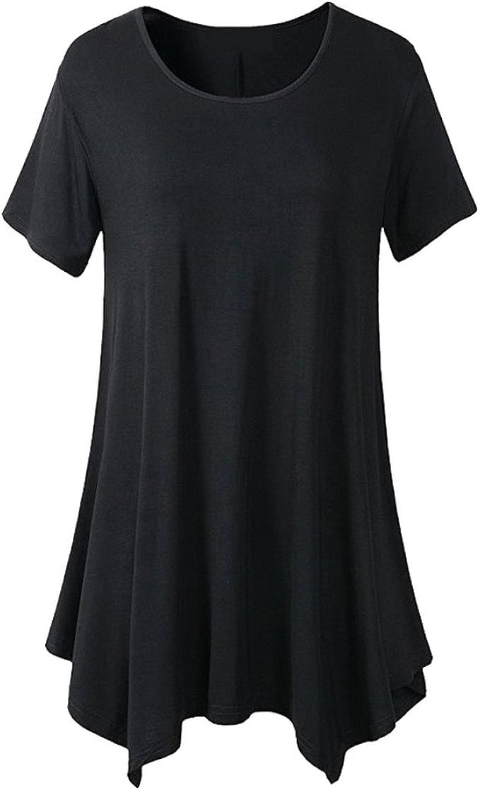 Evedaily Damen Shirt Kurzarm T Shirt Lang Oberteile Langshirt Rundhalsausschnitt Schwarz Amazon De Bekleidung