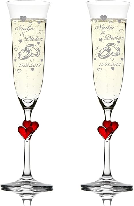 Polar Effekt 2er Set Hochzeitsgeschenke Personalisiert Sektglaser Graviert Mit Namen Und Datum Sektkelche Mit Roten Herzen 175 Ml Geschenk Zur Hochzeit Motiv Zwei Ringe Mit Vielen Herzen Amazon De Kuche Haushalt