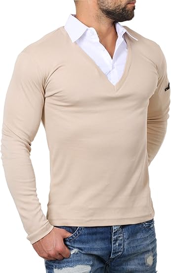 Rerock Men S Double Look Longsleeve Shirt Shirt Jumper Slimfit 2in1 Optics Ebay