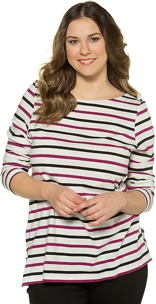 Ulla Popken Damen Grosse Grossen Bis 64 Ringelshirt Langarm Oberteil Gestreift Classic Streifen Seitenschlitze Offwhite 58 60 21 58 Ulla Popken Amazon De Bekleidung