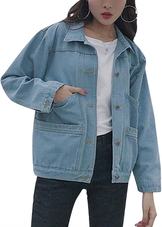Jeansmantel Damen Kurz Casual Boyfriend Style Jeans Jacke Mantel Elegant Fruhling Classic Herbst Relaxed Young Fashion College Revers Longsleeve Jeansjacken Madchen Frauen Amazon De Bekleidung