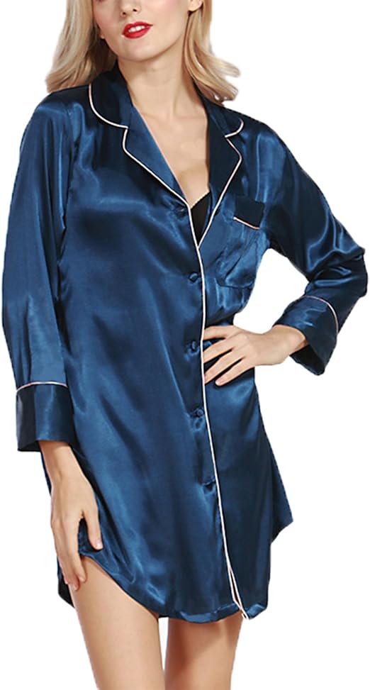 Asskyus Nachthemd Fur Damen Nachthemd Mit Weichem Satin Boyfriend Style Amazon De Bekleidung