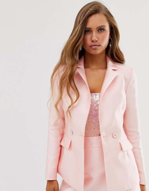 Collective The Label Schmal Geschnittener Blazer Aus Rosa Satin Mit Taschendetail Evesham Nj