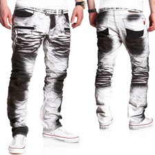 Kleidung Accessoires Herren Jeans Hose Biker Ripped Destroyed Rohre Weiss Used Risse Locher Slim Fit Kleidung Accessoires Herrenmode