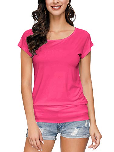 Elfin Damen T Shirt Armellos Longshirt Kurzarm Lassig Tunika Weite O Neck Oberteile Sommer Basic Top Tops T Shirts Blusen T Shirts