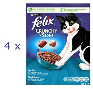 Felix Crunchy Soft Mit Thunfisch Seelachs Katzenfutter 4 X 950 G 3 8 Kg Ebay
