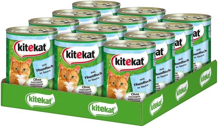 Kitekat Katzenfutter Thunfisch In Sosse 12 Dosen 12 X 400 G Amazon De Haustier