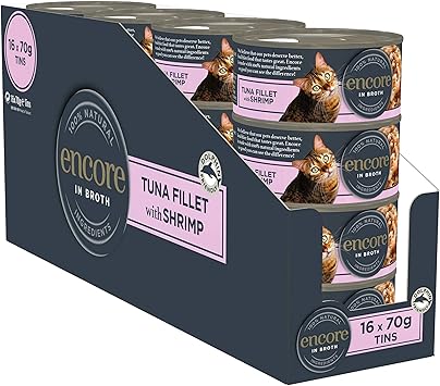 Encore 100 Naturliches Katzenfutter Thunfisch Mit Garnelen In Bruhdose 70g Dose 16 Stuck Amazon De Haustier