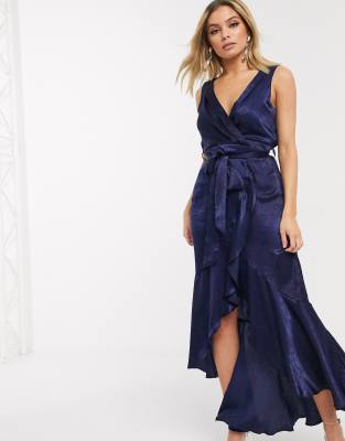 Flounce London Wadenlanges Kleid Mit Wickelfront In Marine Evesham Nj
