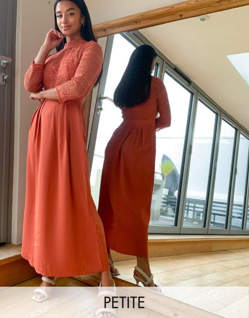 Little Mistress Petite Wadenlanges Kleid Mit Spitzendetail In Rostrot Evesham Nj