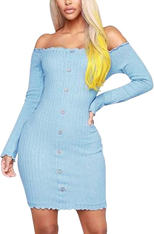 Orandesigne Damen Strickkleid Eng Minikleid Langarm Schulterfrei Kurz Wickelkleid Stretch Festlich Party Kleider Amazon De Bekleidung