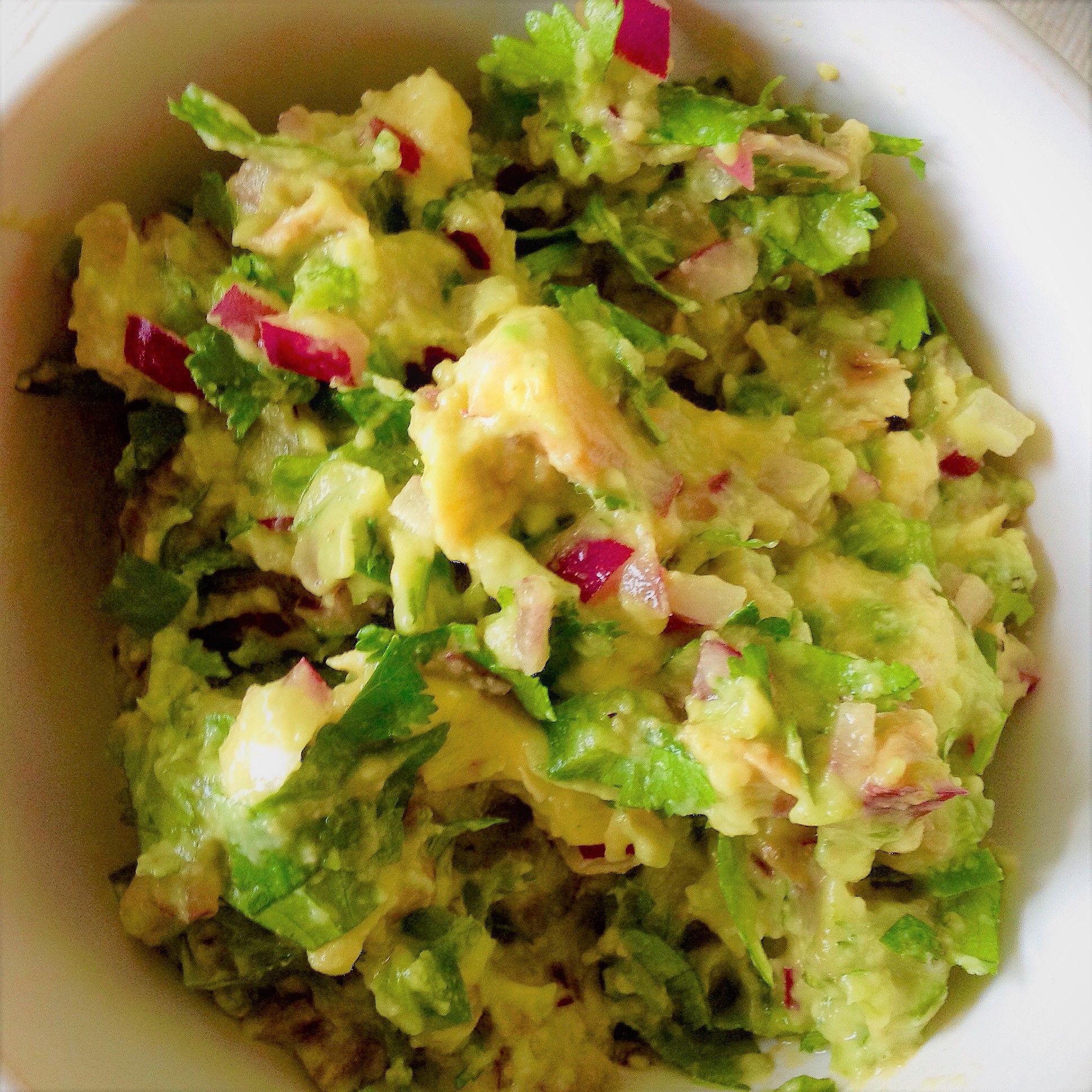 Vegan and Creamy Brian and I had a guacamole and margarita mix off pool day last weekend!. Cut avocados in halves, remove the seed, cut vertical and horizontal lines into the avocado and remove the flesh with a spoon from the skin In a bowl mix avocado pieces, lemon juice, salt and pepper and mash everything with a fork or potato masher Enjoy with some vegan tortilla chips or cut up veggies. Instructions Add avocado, onion, jalapeño, lime, salt, cumin, and red pepper flake to a shallow mixing or serving bowl and mash with Add cilantro and stir Then taste and adjust flavor as needed, adding more lime (or lemon) for acidity, cumin for Serve immediately with chips or veggies of.