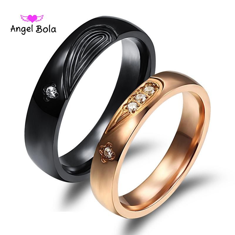 Grosshandel Mode Schwarz Rose Gold Weiss Strass Titanium Stahl Paar Ringe Set Manner Frauen Engagement Hochzeit Ringe Von Angel8 5 22 Auf De Dhgate Com Dhgate