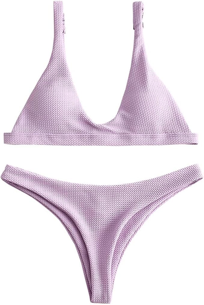 Zaful Damen Badeanzug Gepolstert U Ausschnitt Push Up Bikini Offenbarer Brasilianischer Bikini V Unterteil Bh Sets Gr L Flieder Amazon De Bekleidung