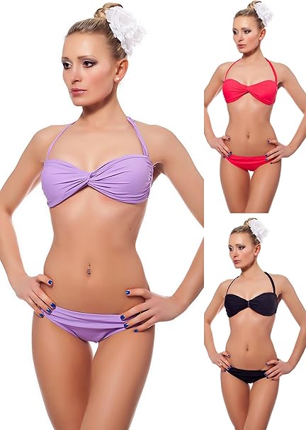 Bandeau Bikini Mit Zier Ringen M 36 Flieder Amazon De Bekleidung