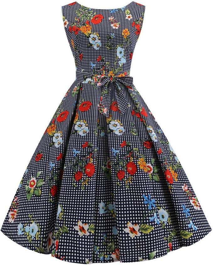 Kukicat Damen Cocktailkleider 1950er Vintage Retro V Ausschnitt A Linie Abendkleid Blumenrock Armellos Party Kleider Amazon De Bekleidung