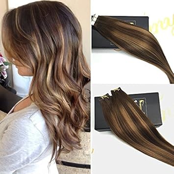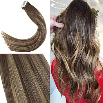 Youngsee Remy Tape Extensions Echthaar Balayage Extensions Echthaar Tapes Ombre Mittelbraun Bis Blond Seamless Haartape Extensions Echthaar Glue In Haarverlangerung Stuck 50grammm 55 Cm Amazon De Beauty