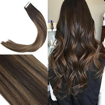 Laavoo Tape In Extensions Echthaar Balayage Braun Remy Haar Extensions Tape Schwarz Balayage Hellbraun Ombre Hell Goldbraun Seamless Haar Extension Tape 50gr pcs 1b 8 12 22 Zoll 55cm Amazon De Beauty