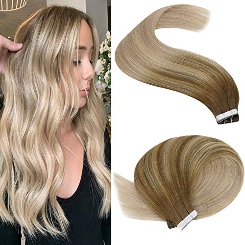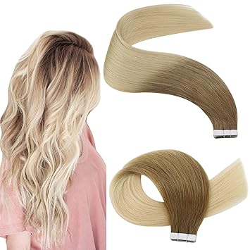 Laavoo Balayage Tape Extensions Echthaar Blond Stucke Aschblond Balayage Mittelblond Ombre Platinblond Tape In Haarverlangerun 50gr Zoll 50cm Tape Double Sided Remi Echthaar Blond Amazon De Beauty