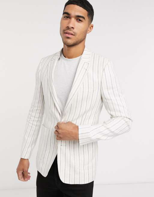 Evesham Nj Design Superenger Leinen Blazer In Stone Mit Weissen Streifen Evesham Nj