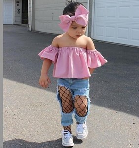 Baby Girls Off Shoulder Clothing Toddler Kids Tops Denim Pants Hole Jeans Outfits Clothes Buy At The Price Of 7 44 In Aliexpress Com Imall Com