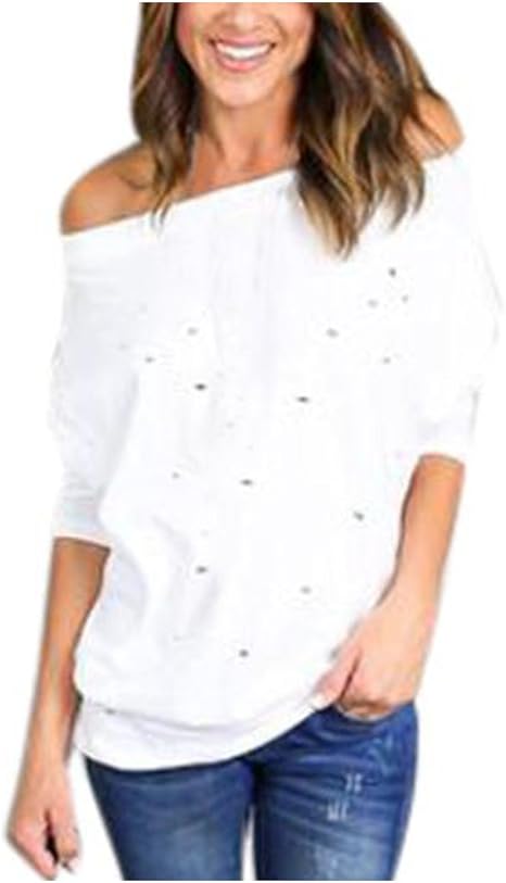 Amazon Com Women Long Sleeve Shirt Inkach Chic Girls Off Shoulder Shirt Hole Ripped Loose Casual T Shirt L White