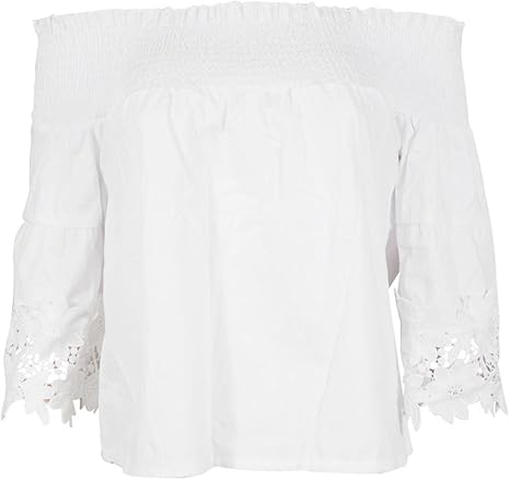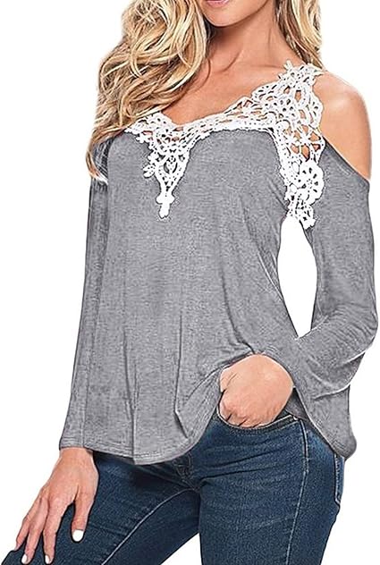 Amazon Com Inkach Stylish Women Girls Off Shoulder Shirt Lace Long Sleeves Casual Loose Top Blouse T Shirt L White Arts Crafts Sewing
