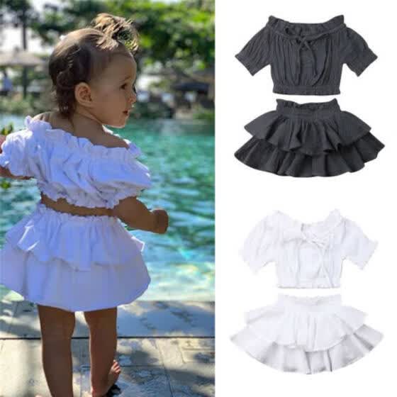 Shop Us Newborn Kid Baby Girl Tops Off Shoulder Shirt Ruffle Skirt Outfit Clothes Set Online From Best Babywear On Jd Com Global Site Joybuy Com