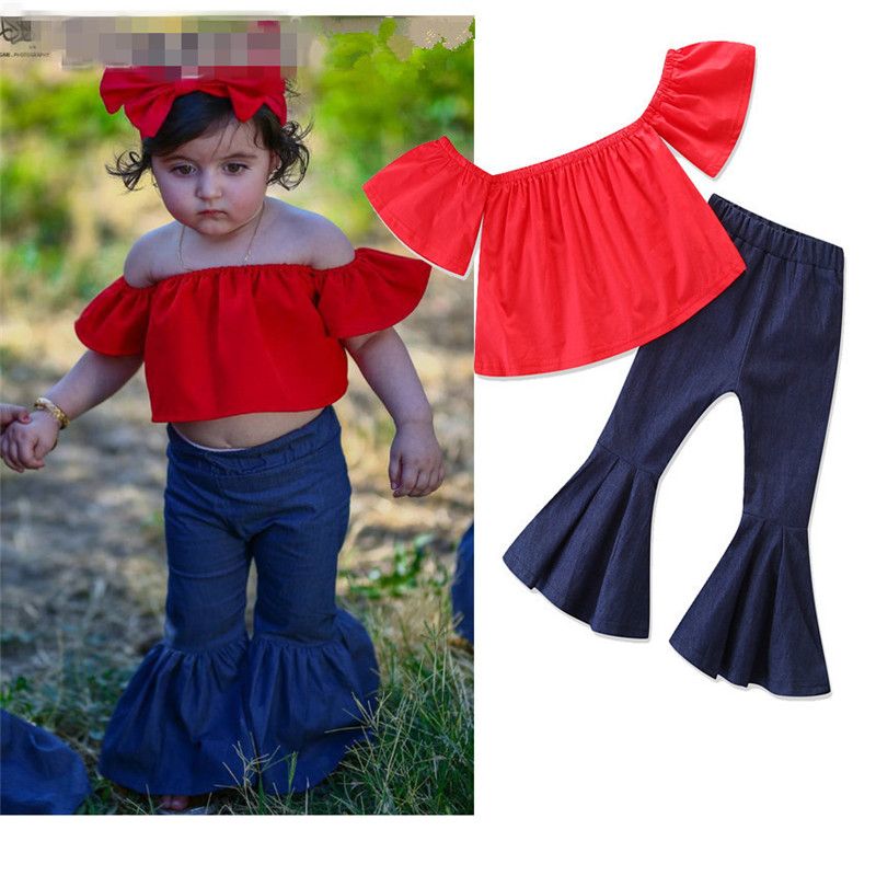 21 Kids Girls Sets Baby Girl Off Shoulder Shirt Flare Pants Suits Infant Princess Outfits Children Clothes Boutique B11 From Start Baby 85 33 Dhgate Com