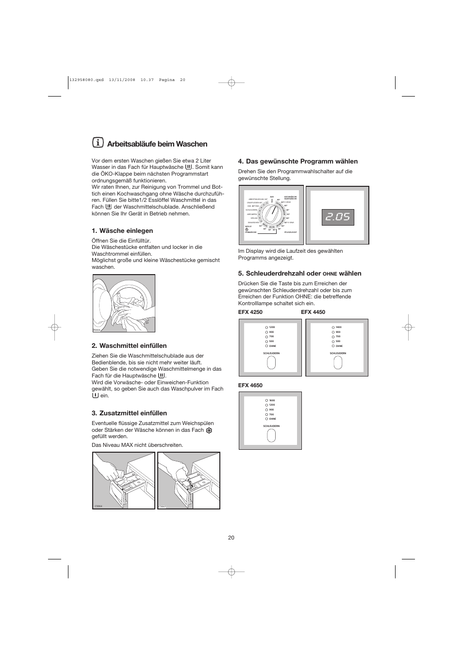 Arbeitsablaufe Beim Waschen Wasche Einlegen Waschmittel Einfullen Zanker Efx 4450 Benutzerhandbuch Seite 32