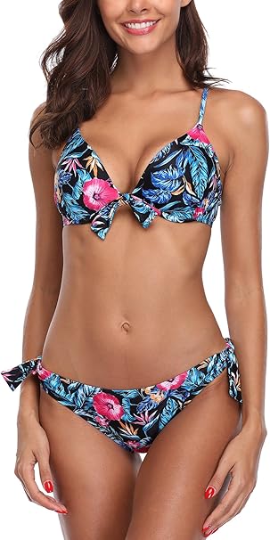 Charmleaks Damen Bikini Set Mit Bugel Und Schalen Cups Bikinis Blumen Push Up Bikini Hawaii Xl Amazon De Bekleidung
