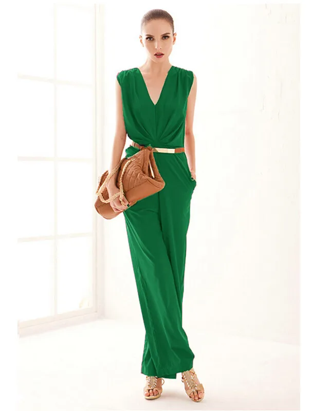 Damen Grun Festlich Elegant Jumpsuit Gurtel Armellos Breit Bein Overall Catsuit Clubwear Kleidun Jumpsuit With Sleeves Solid Color Jumpsuits Casual Playsuit