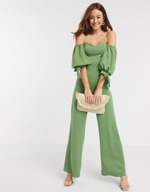 True Violet Exklusiver Gruner Jumpsuit Mit Carmenausschnitt Und Ballonarmeln Asos