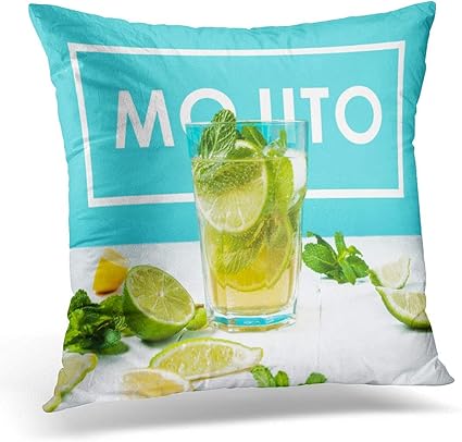 N A Uberwurfkissenbezuge Gruner Alkohol Mojito Cocktail Mit Limette Und Minze In Highball Glas Auf Holztisch Blau Weiss Alkoholisch Dekorativer Kissenbezug Fur Sofa 45 7 X 45 7 Cm Amazon De Kuche Haushalt