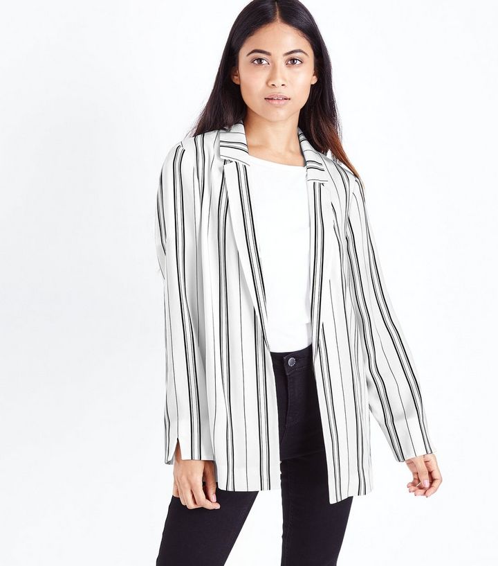 Petite Weisser Blazer Aus Kreppstoff Mit Streifen New Look