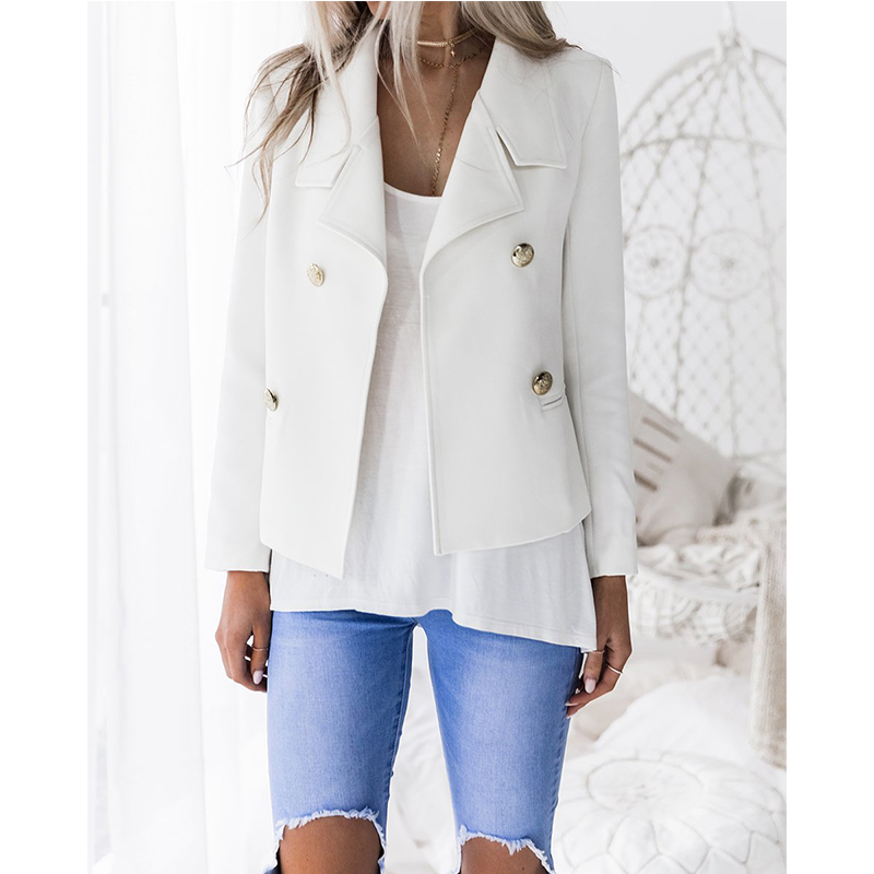 Weisser Blazer Jacke Frauen Turndown Kragen Knopfe Langarm Jacke Milanoo Com