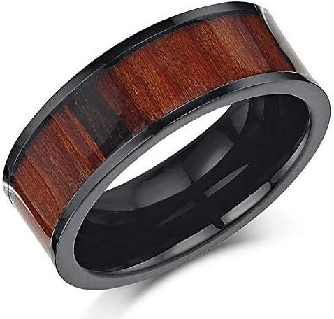 Herren Schwarz Titan Holz Ring 8mm Koa Holz Intarsie Einzigartig Verlobung Ehering Original Echtholz Ring Schwarz Amazon De Schmuck
